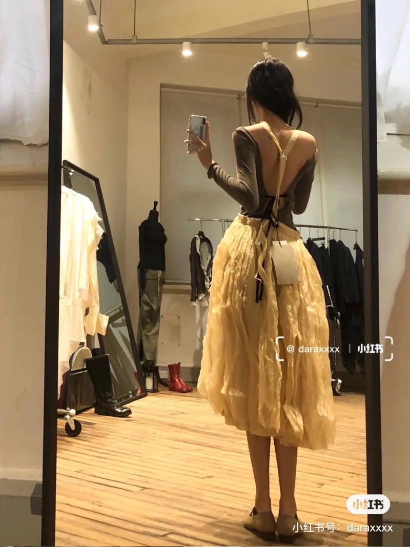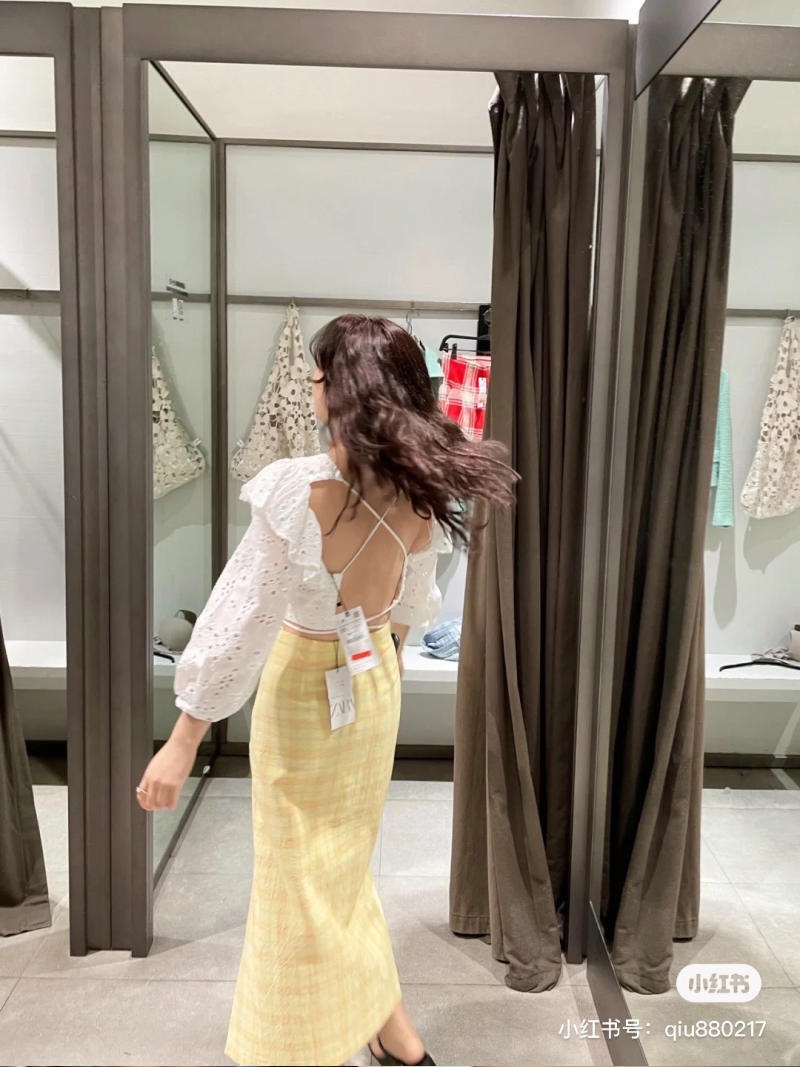 Áo yếm hở lưng cut-out mặc với chân váy đuôi cá
