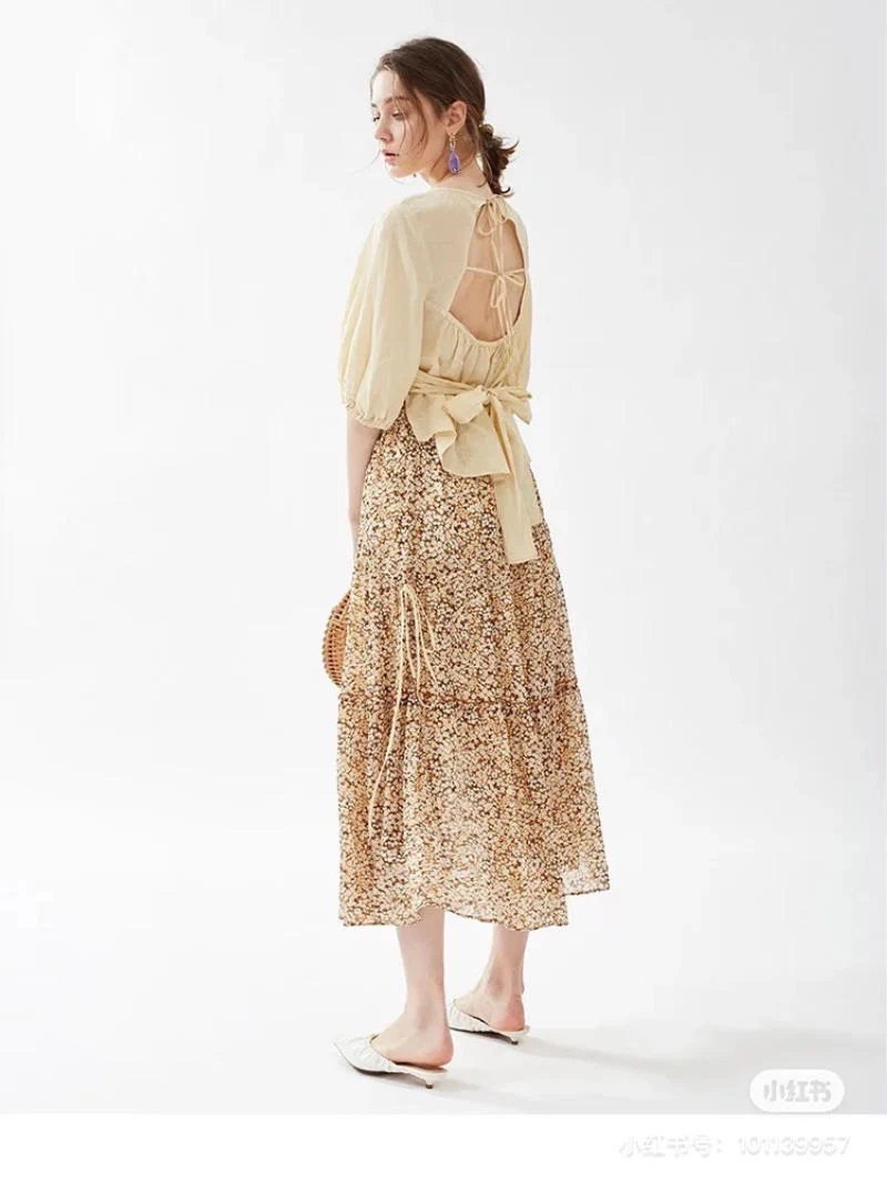 Chân váy hoa nhí mix Áo yếm hở lưng không khó tìm kiếm
